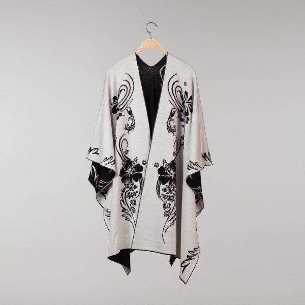 Hawaii Pure Merino Wool Poncho black-white